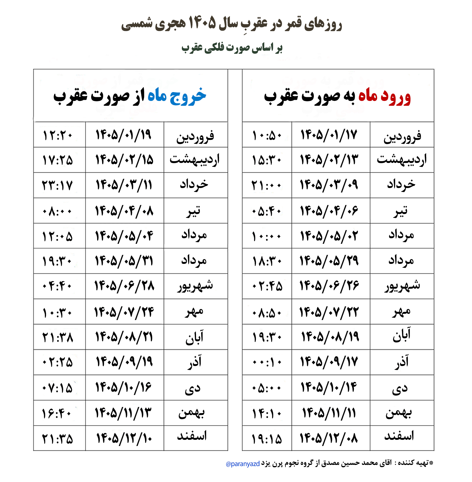 به همین خاطر ما علاوه بر ورود و خروج قمر به صورت فلکی عقرب برای اطلاع مراجعین محترم ورود و خروج قمر به برج عقرب را نیز قرار می دهیم: